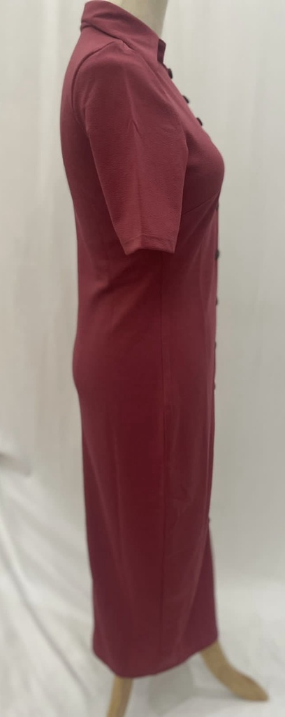 Dress shirt ankle level dress with short sleeves and dressy collar. Wooden brown buttons.
