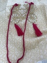 Bicycle embroidered maxi dress with leaves printed fabric and bright pink tassels