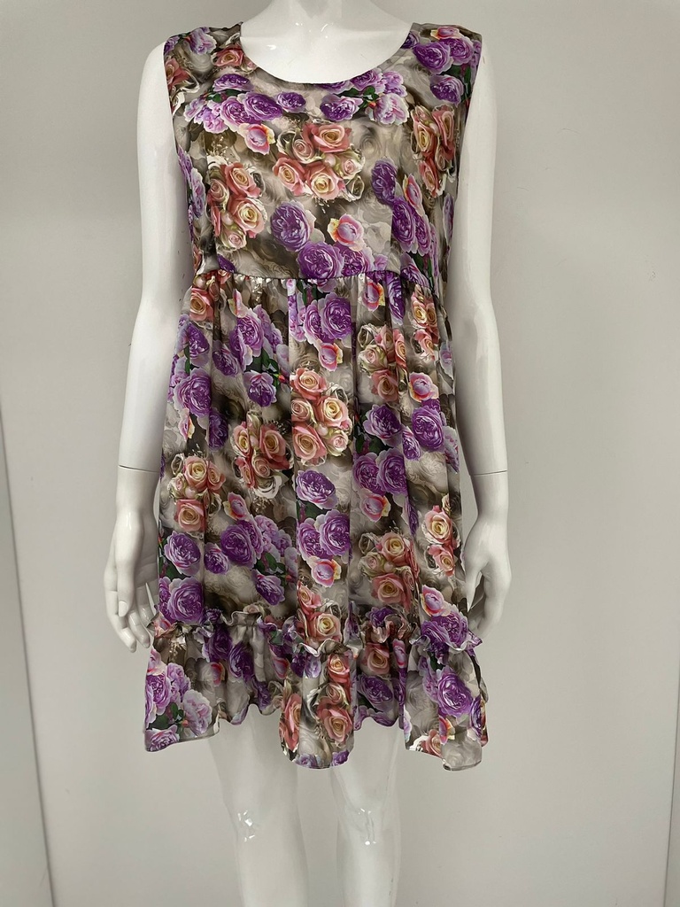 Sleeveless Floral Print Chiffon Midi Dress Summer O-neck Lady Tank Sundress Elegant And Cute Floral In Purple With Ruffle Down Women Clothing.